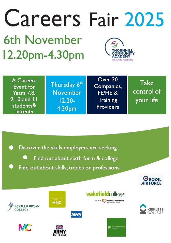We are looking forward to welcoming over 20 different local post-16 providers, employers and businesses. Among these are representatives from the NHS, Army, Royal Air Force, Leeds University and Huddersfield New College.